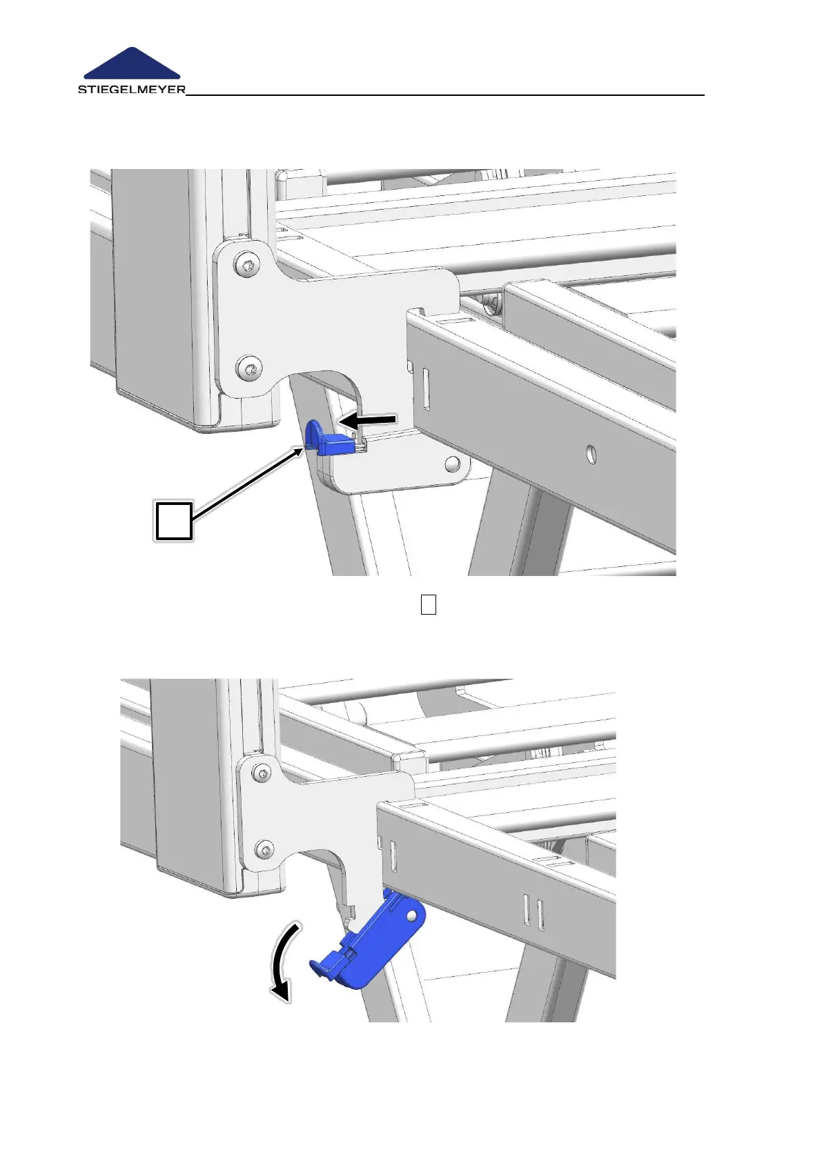 Use a finger to pull the orange safety lock 1 of the locking lever outwards and