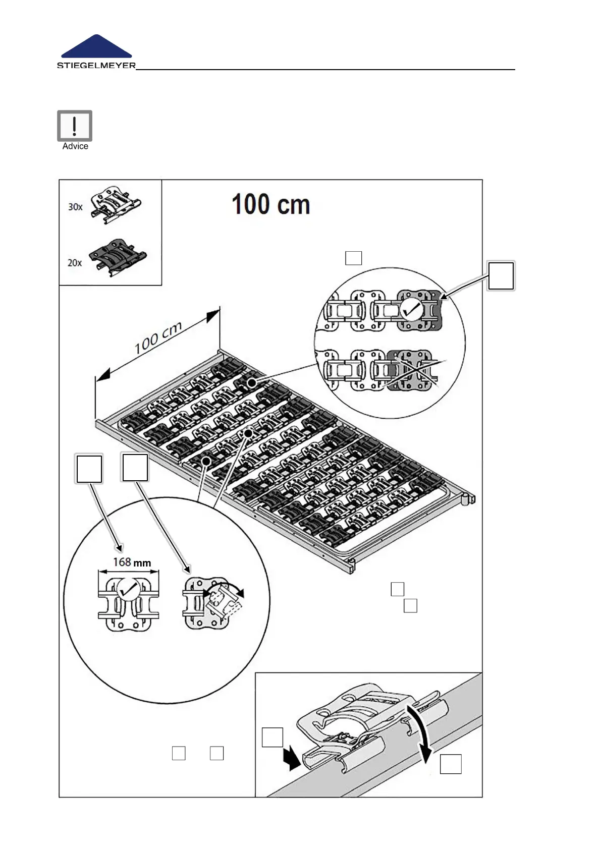 The following assembly instructions refer to the 100 cm wide mattress base: