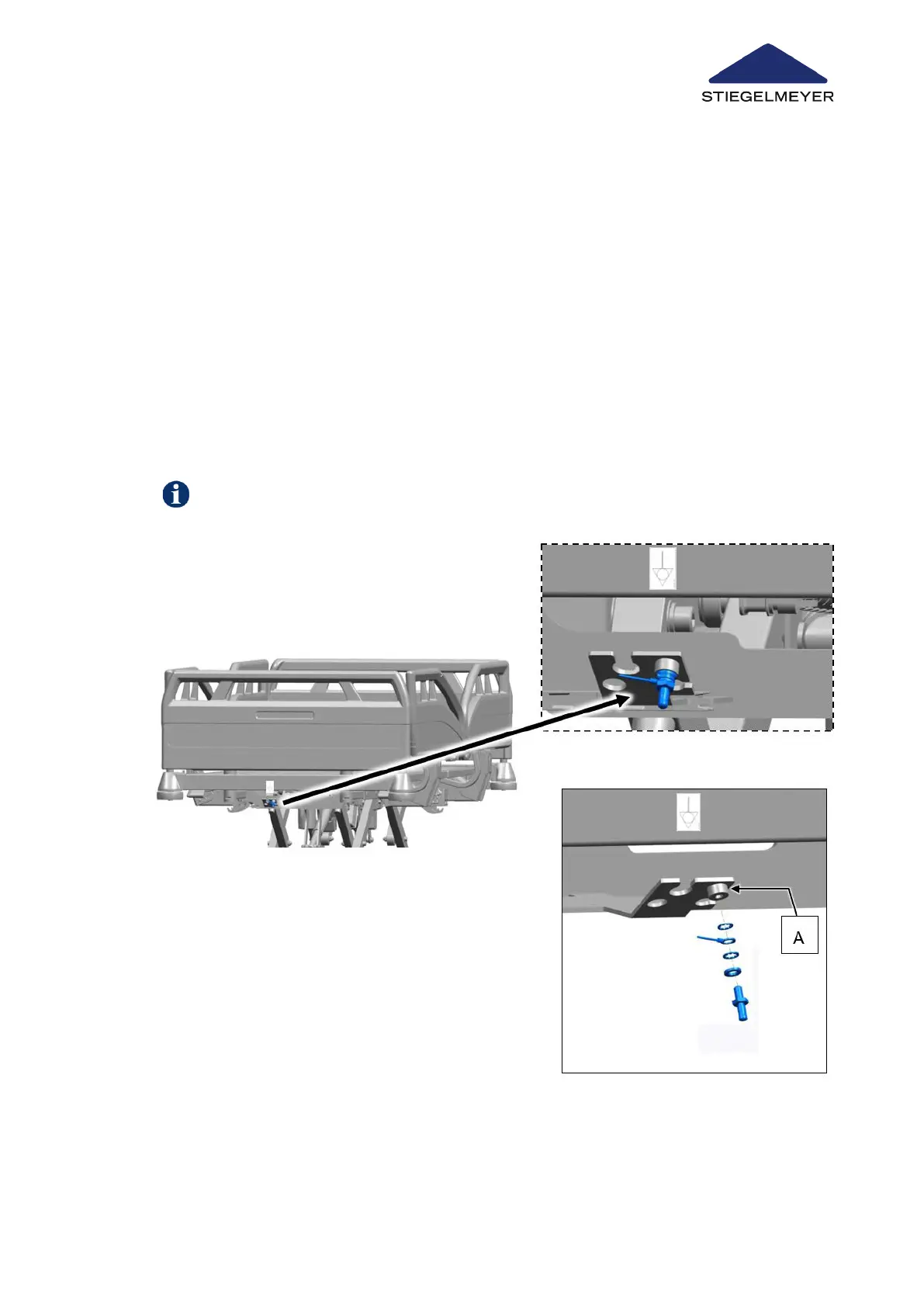 Tighten the pin in the threaded sleeve [A] on the mattress base frame