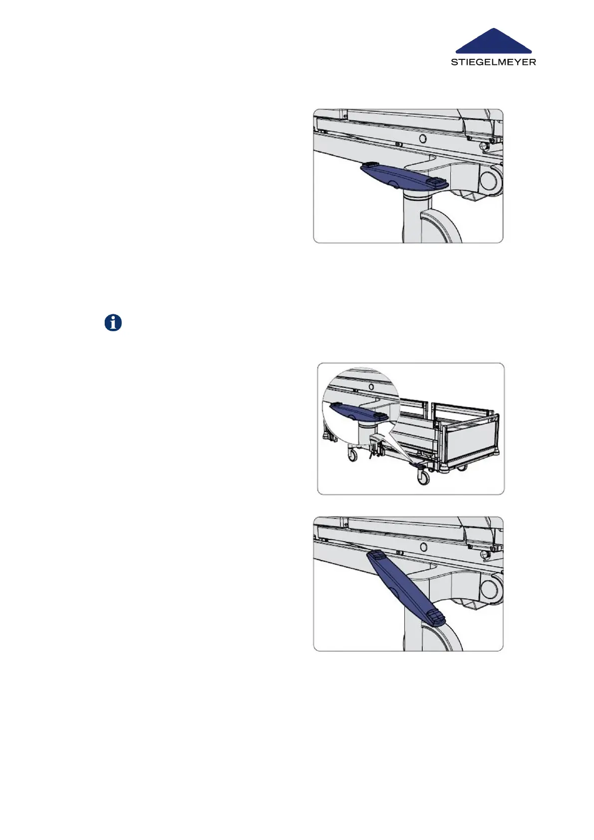 One of the castors of the bed can be fitted with a steering lock to make it easier to move the