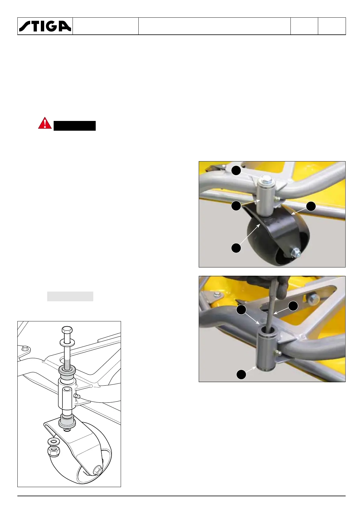 • Move the cutting deck to the "Maintenance / Washing" position to allow removal of the support
