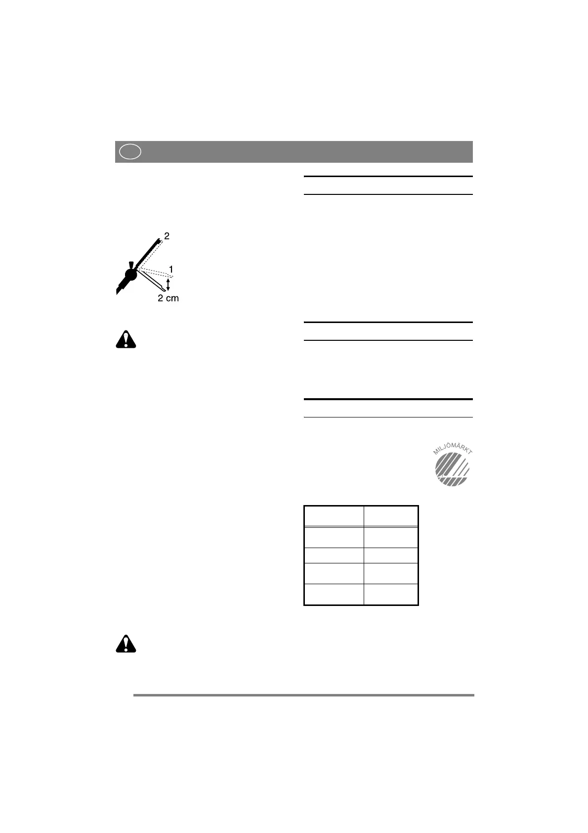 tryckt ca 2 cm (läge 1) ska det