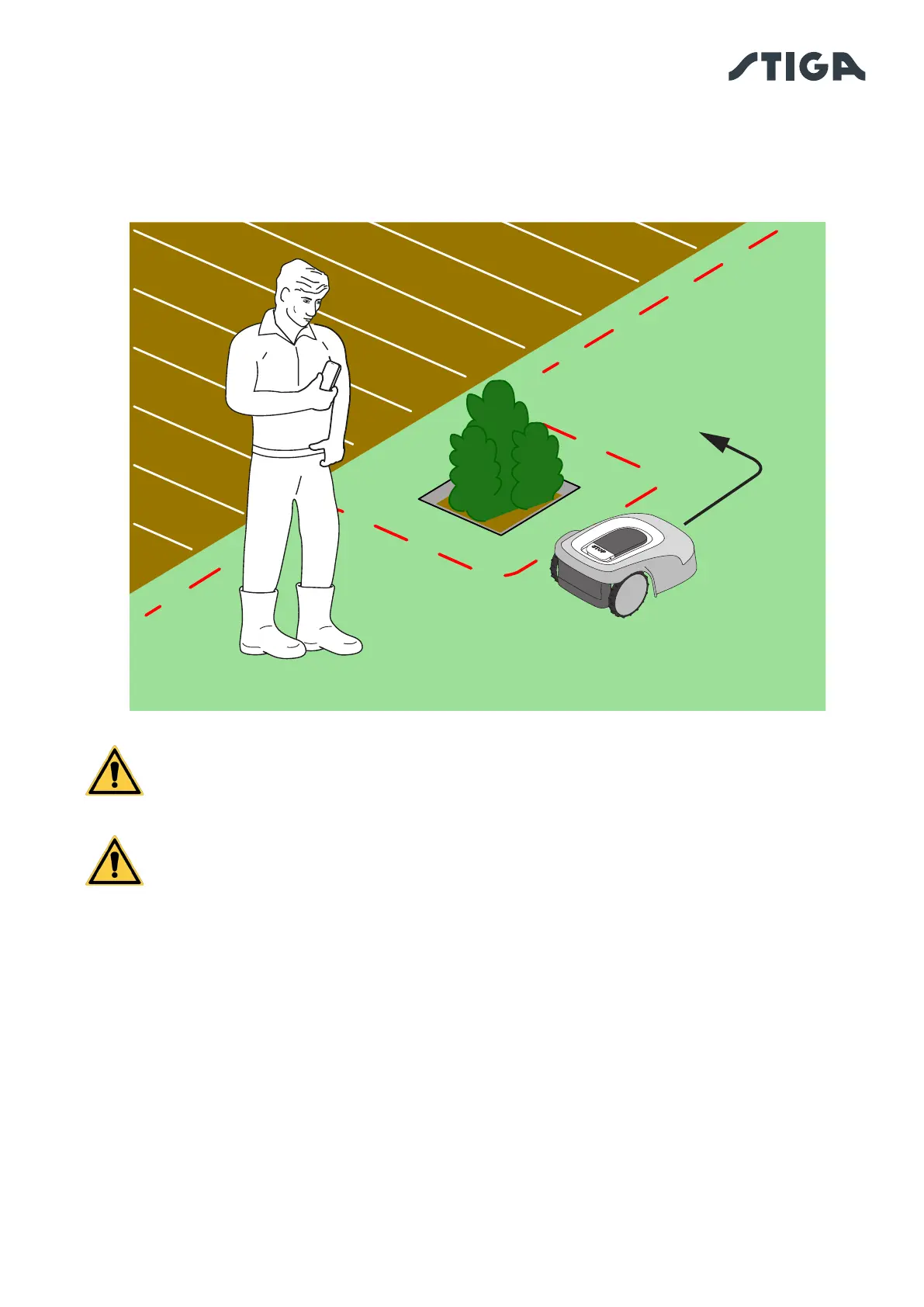 mower is manually guided. When guiding the robot, walk carefully to avoid
