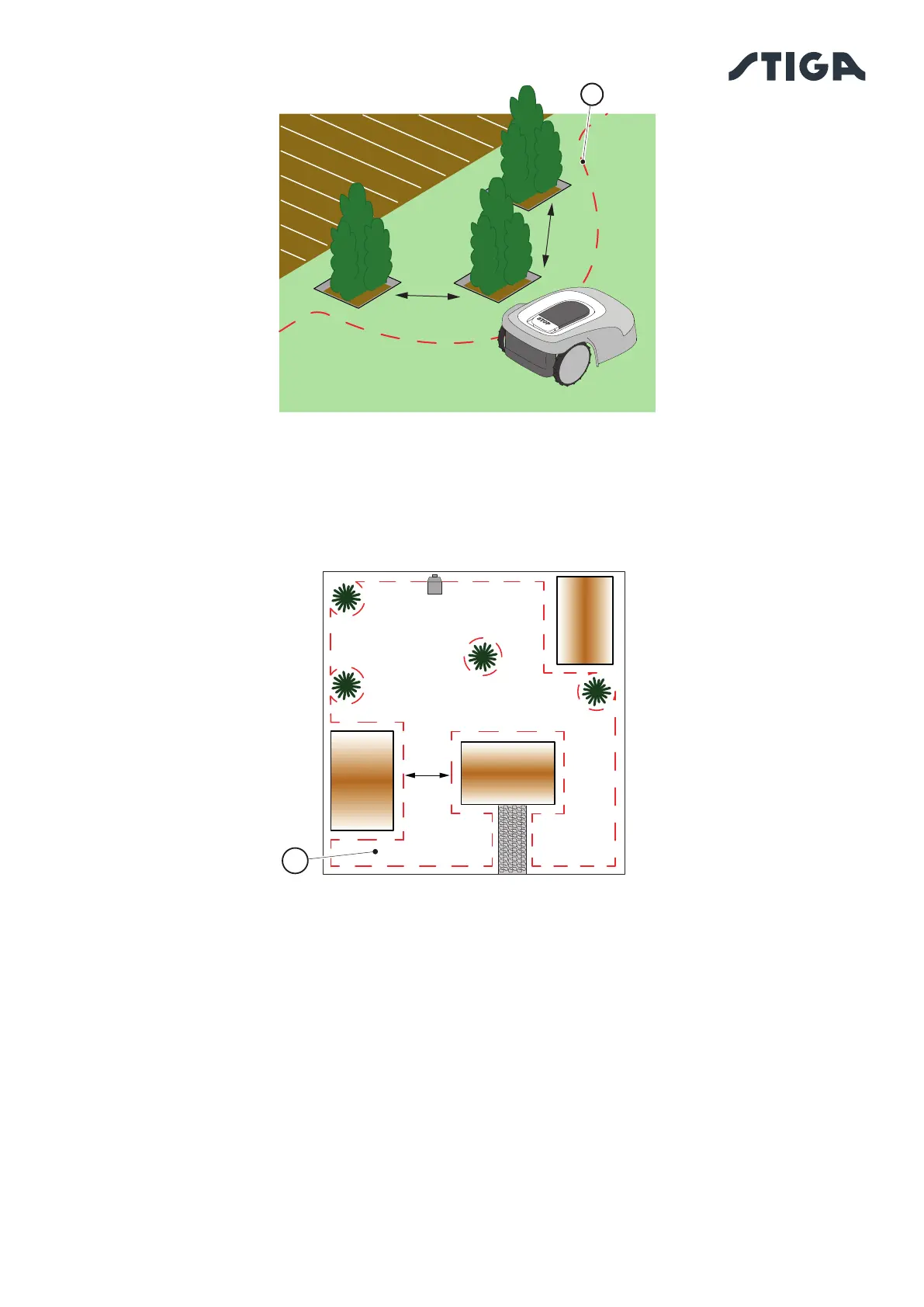 2. In the case of a passage Z < 2 m, zone (A) may not be reachable by the robot lawn mower