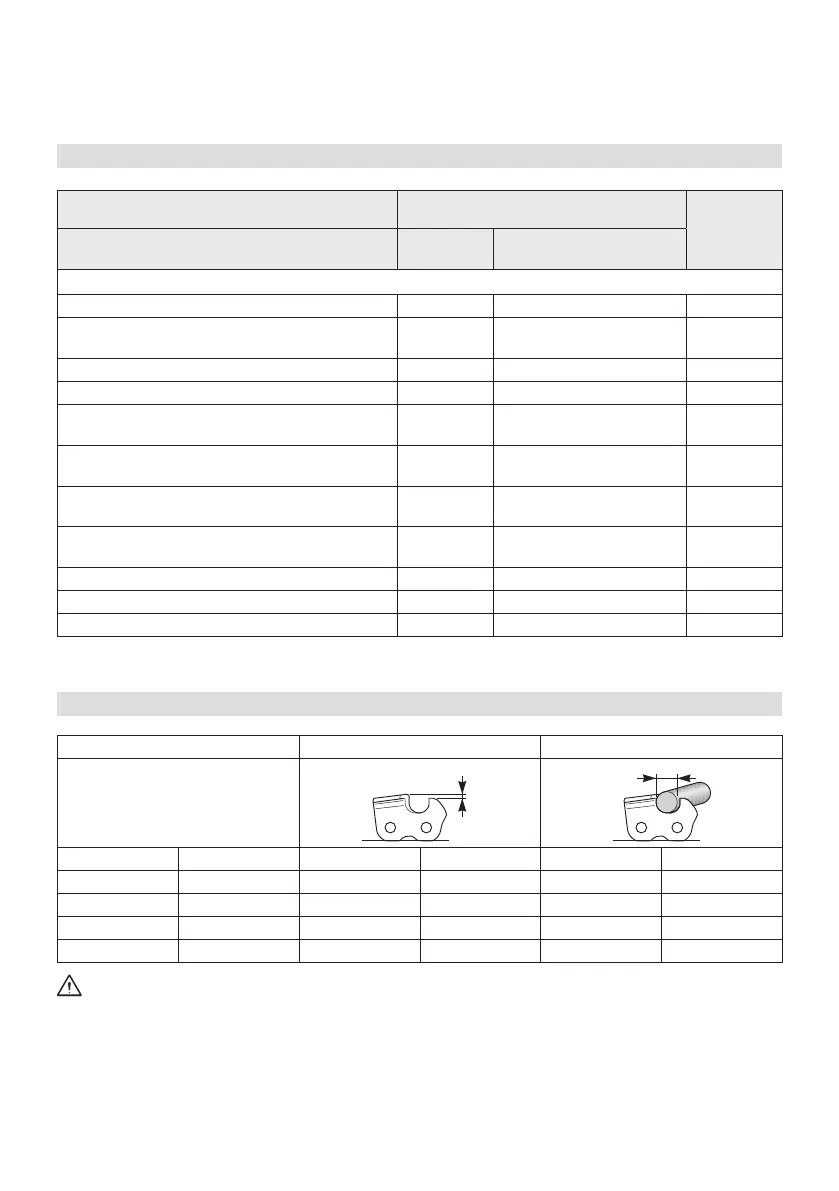 et listées dans le “Tableau des combinaisons correctes entre guide-chaîne et chaîne”.