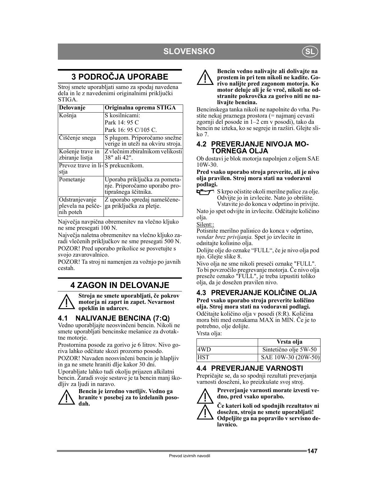 Delovanje Originalna oprema STIGA