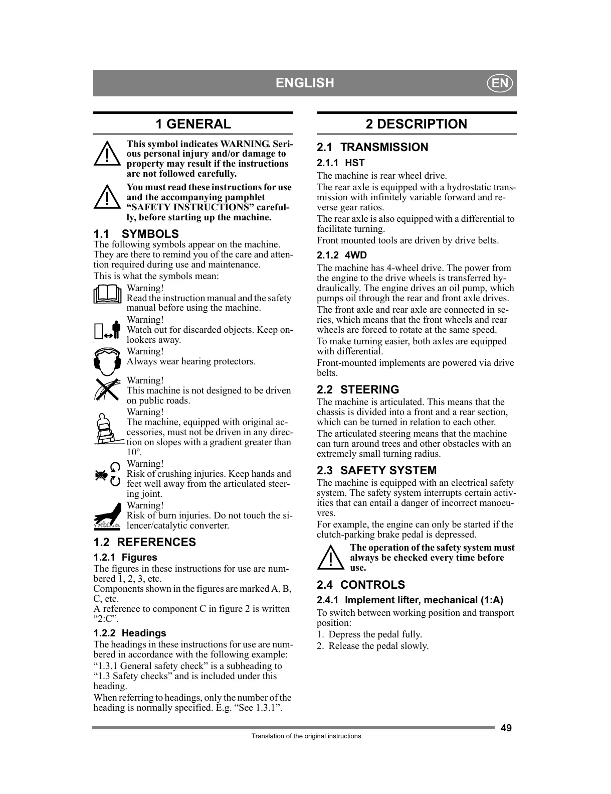 Translation of the original instructions