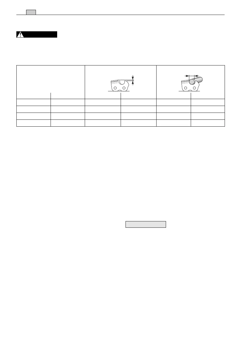 Tabela wykazuje dane ostrzenia różnych typów łańcucha, jednakże nie stanowi to podstawy do używania