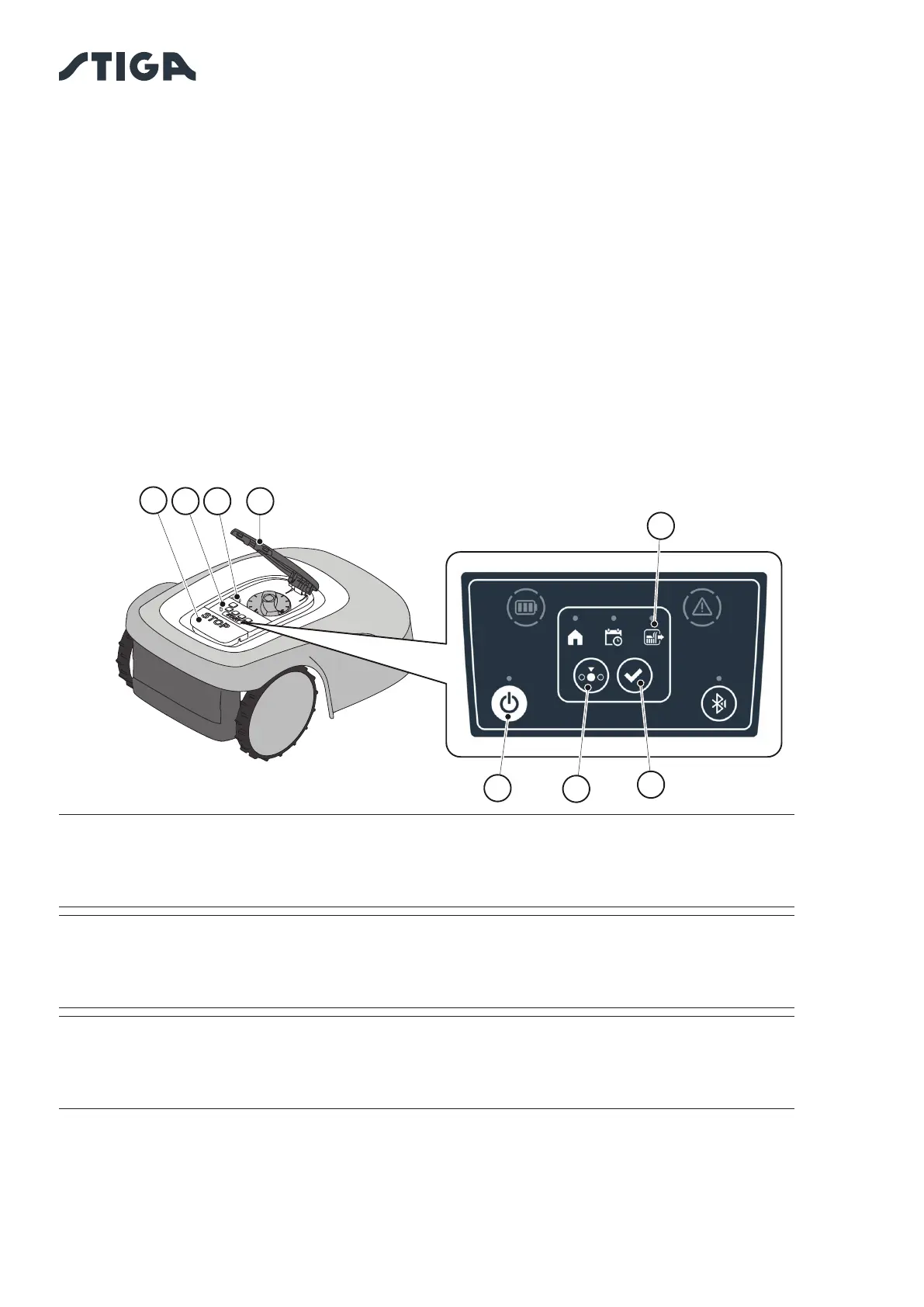 3. Press the “” button (E) for 3 seconds to switch on the robot lawn mower.
