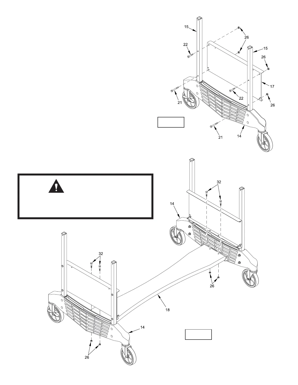 7. Attach Wood Bottom Board #18 to Caster Beams #14 as shown