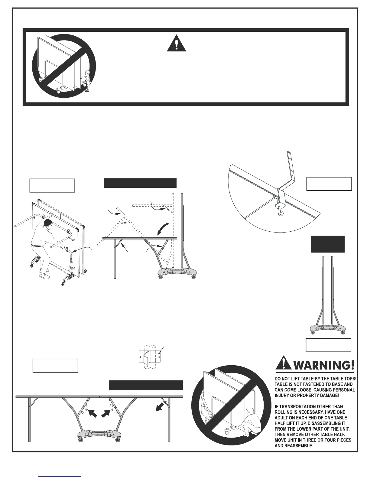 EXERCISE CAUTION IN OPENING/CLOSING TABLE. SMALL CHILDREN, OR