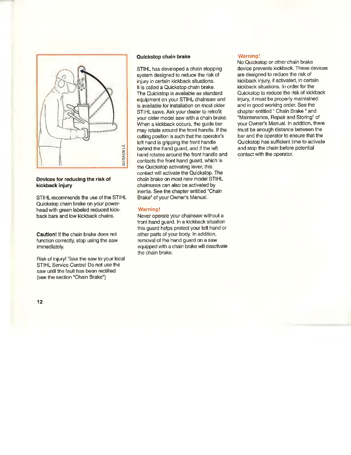 Stihl 038 - Quickstop chain brake; Devices for reducing kickback injury