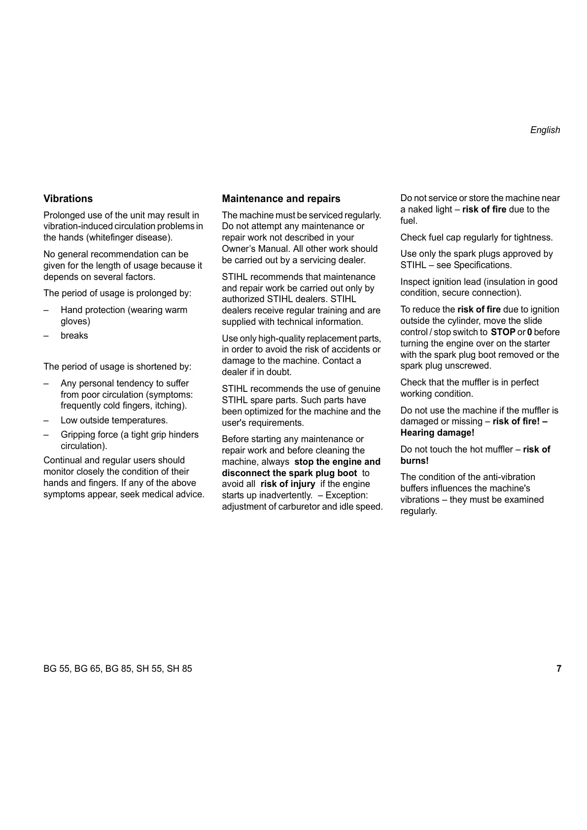 7BG 55, BG 65, BG 85, SH 55, SH 85