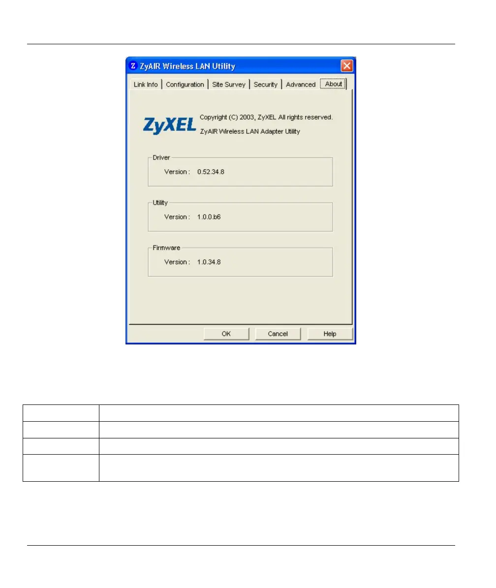 Utility Version This field displays the version number of the ZyAIR Utility.