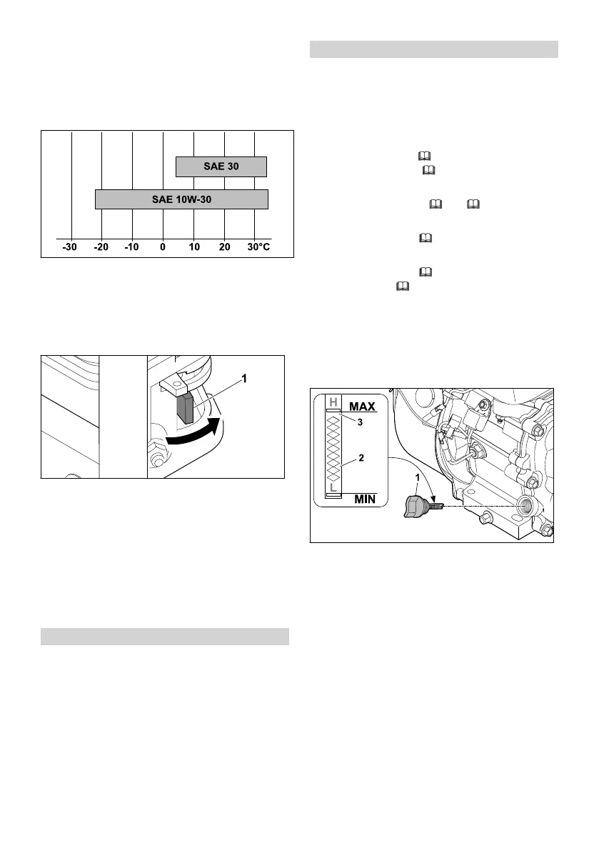 ► Gài que thăm dầu (1) vào cổ miệng rót, không