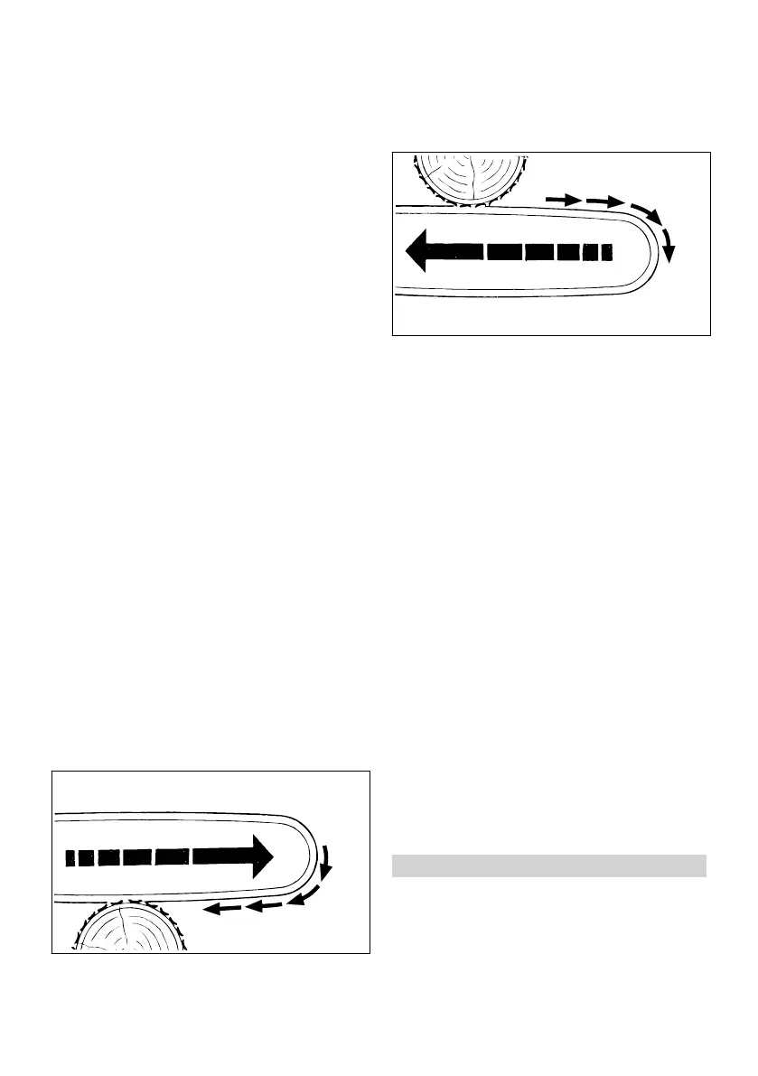 the chain drives the saw straight back toward the