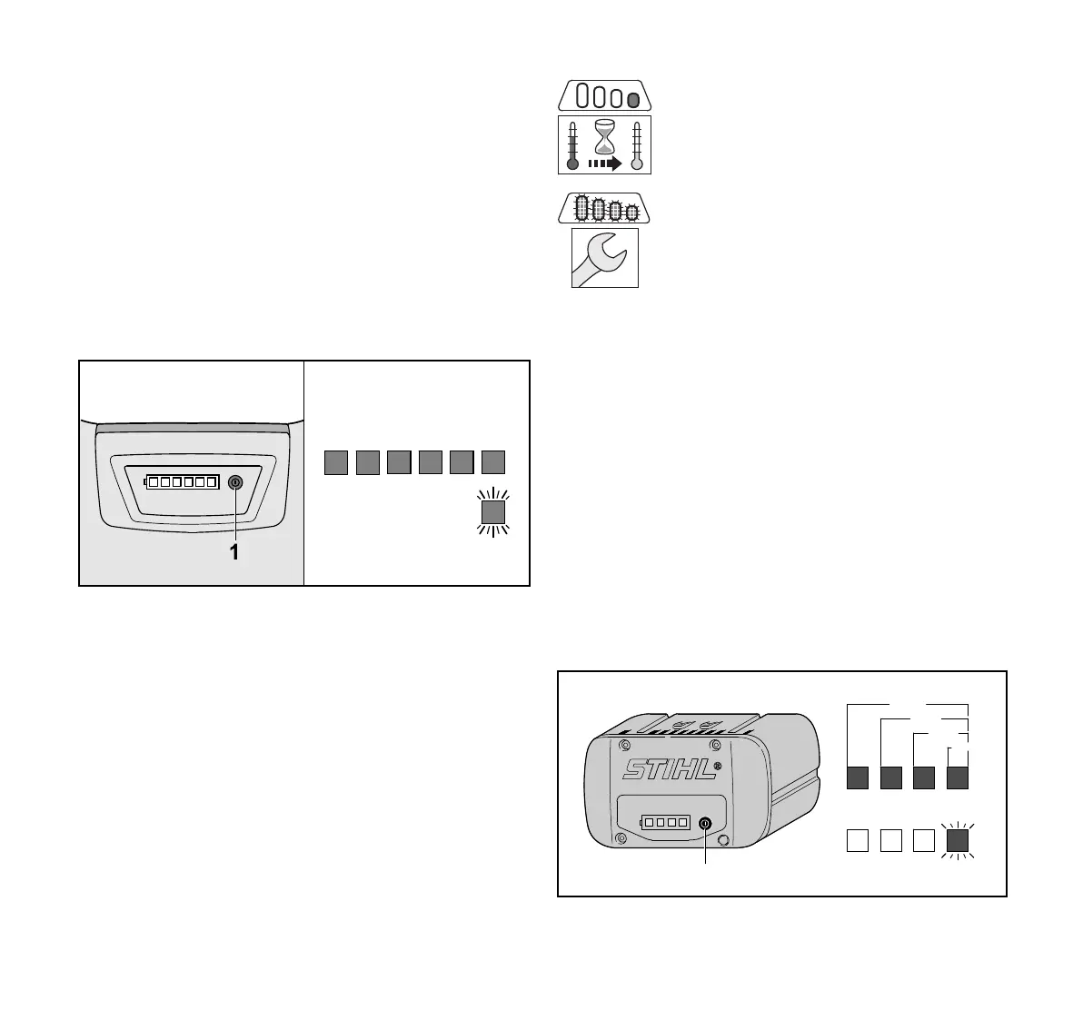 The LEDs and acoustic signals on the battery also indicate