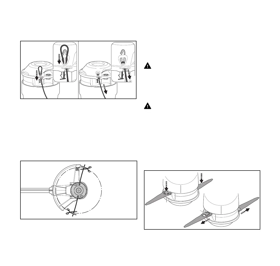 ► Poussez le fil de coupe par le dessous à travers le trou de