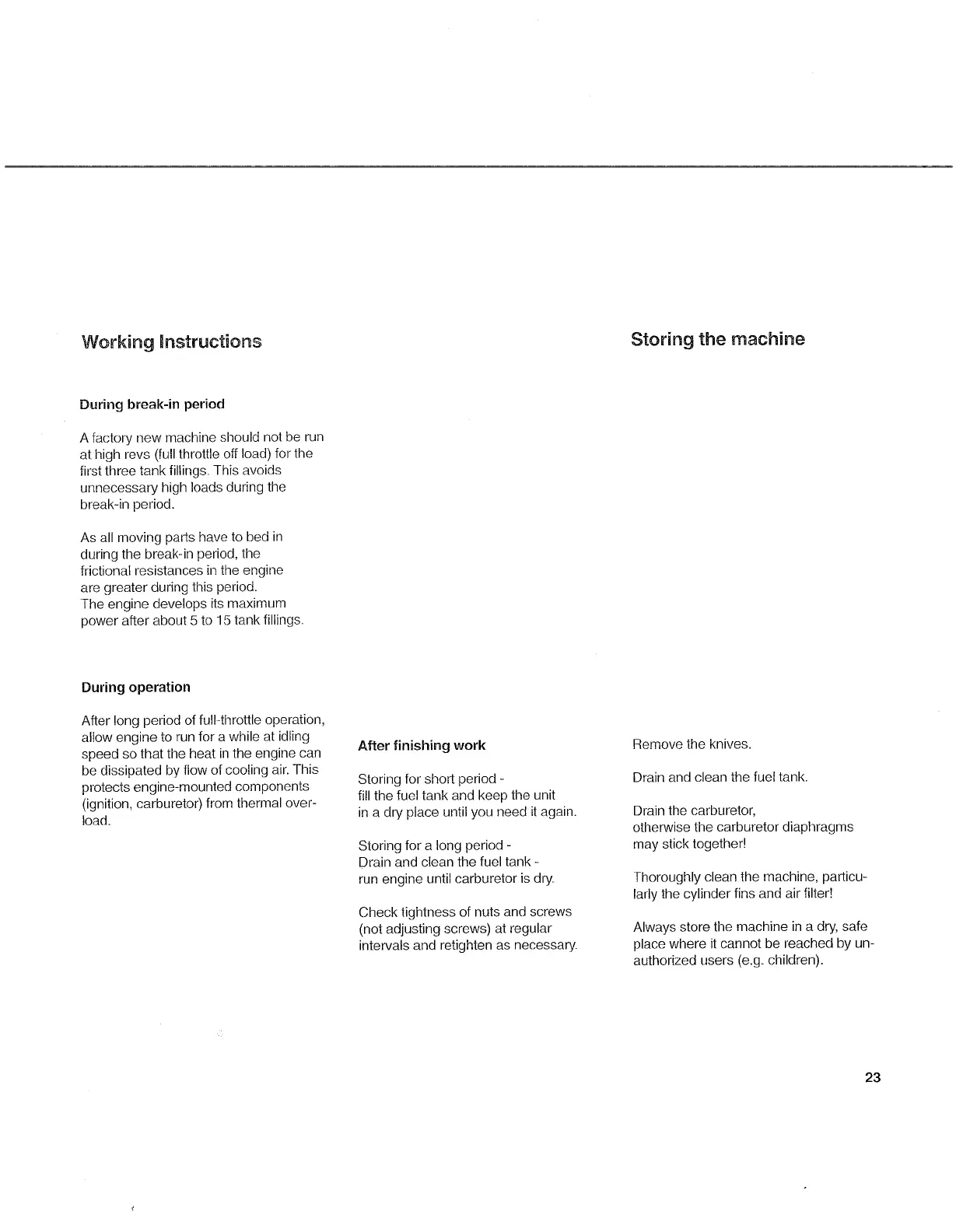 Stihl HS 74 - Working Instructions; During Break-in Period; During Operation