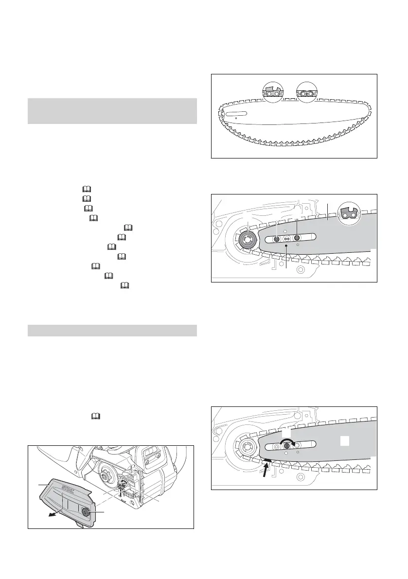 ► Fit the guide bar and saw chain on the chain‐