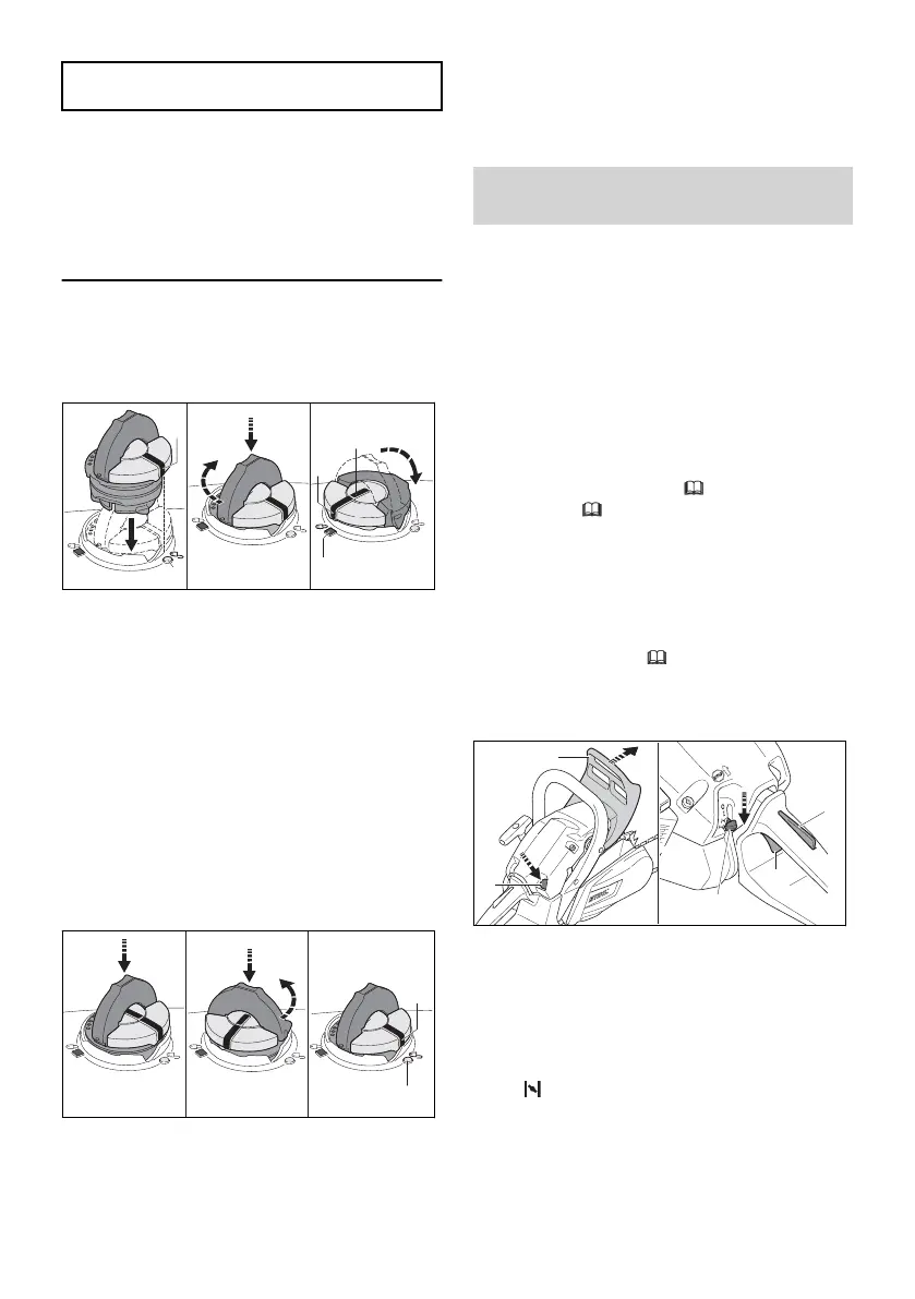 ► Press the fuel tank cap down and rotate it