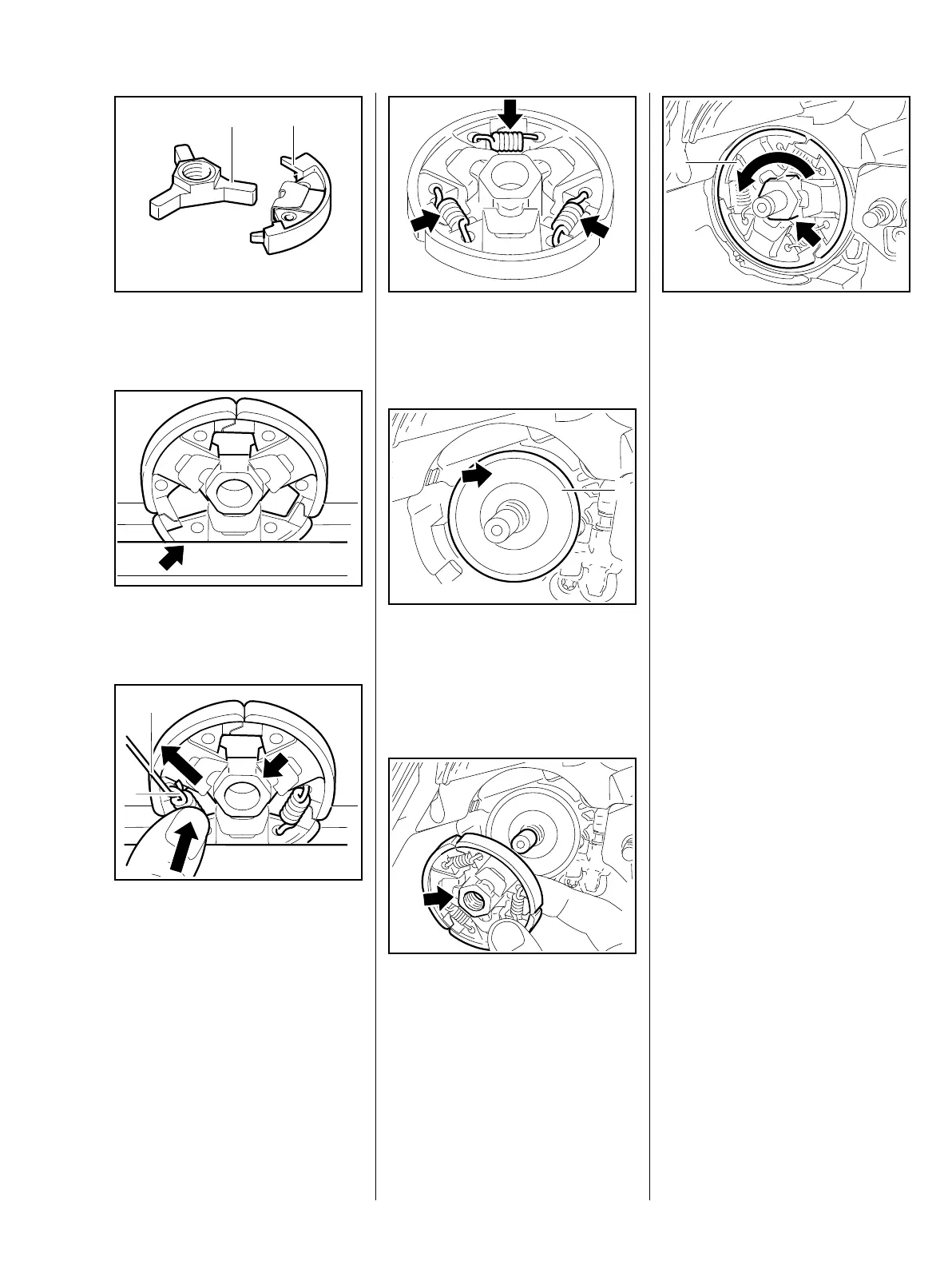 : Fit the clutch shoes (2) over the