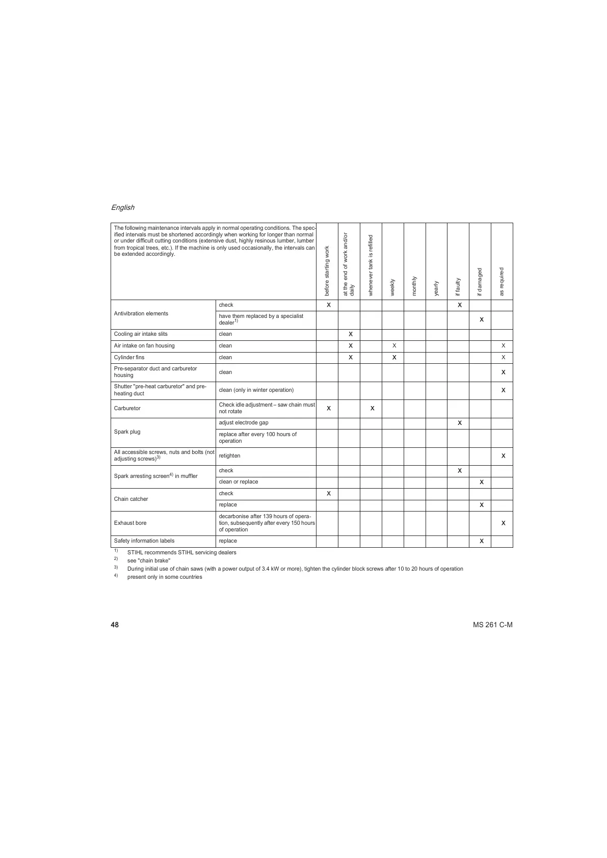 7KHIROORZLQJPDLQWHQDQFHLQWHUYDOVDSSO\LQQRUPDORSHUDWLQJFRQGLWLRQV7KHVSHF-
