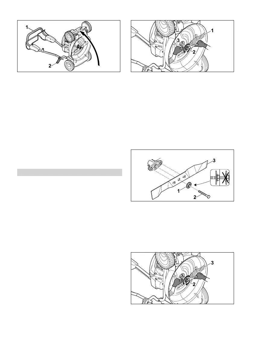 ► Hátrafelé döntve állítsa fel a fűnyíró gépet.