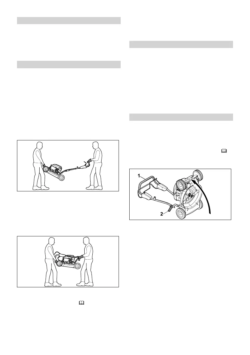 ► Sagāziet zāles pļāvēju uz aizmuguri.