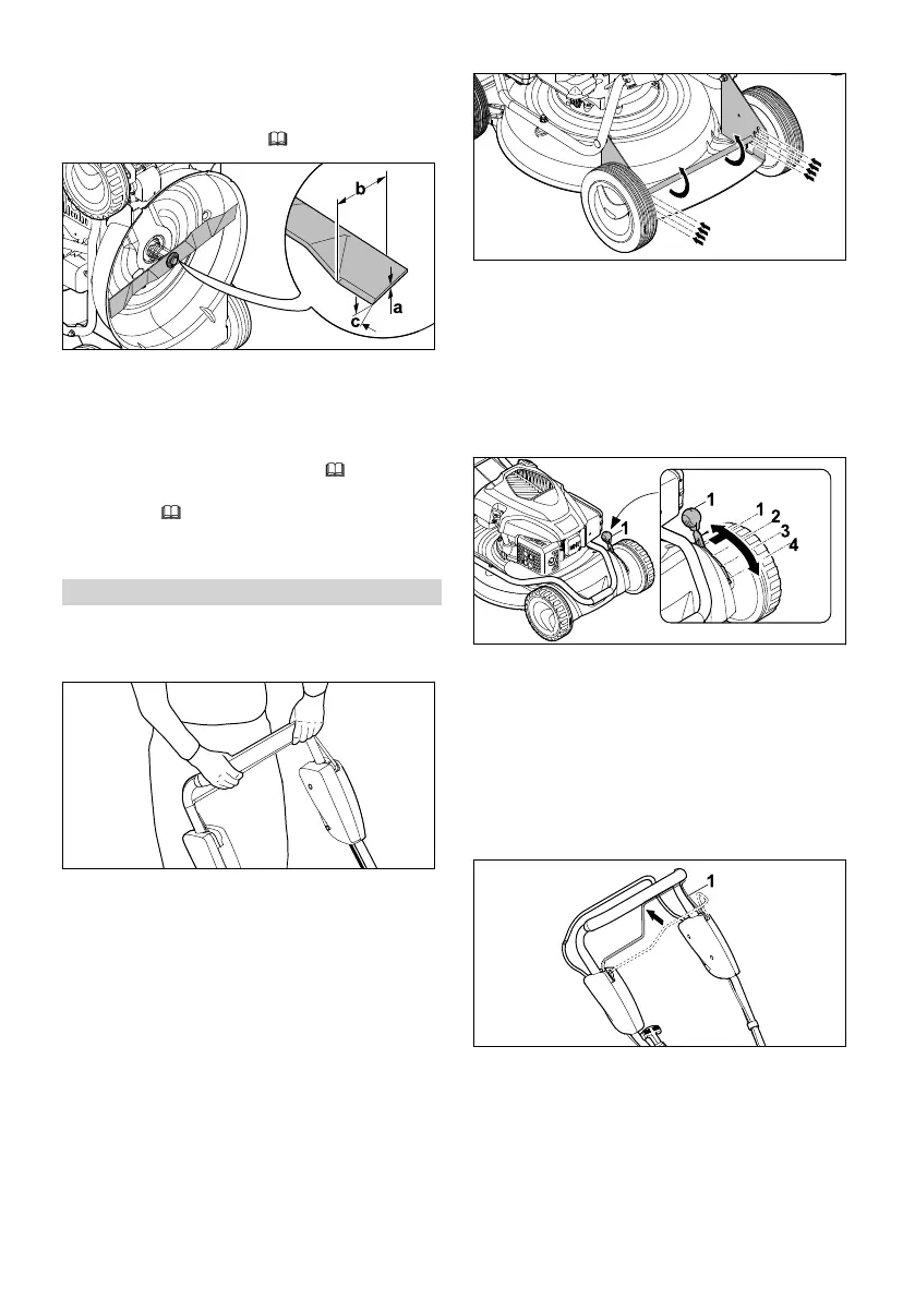 ► Press cutting height adjustment lever (1) out‐