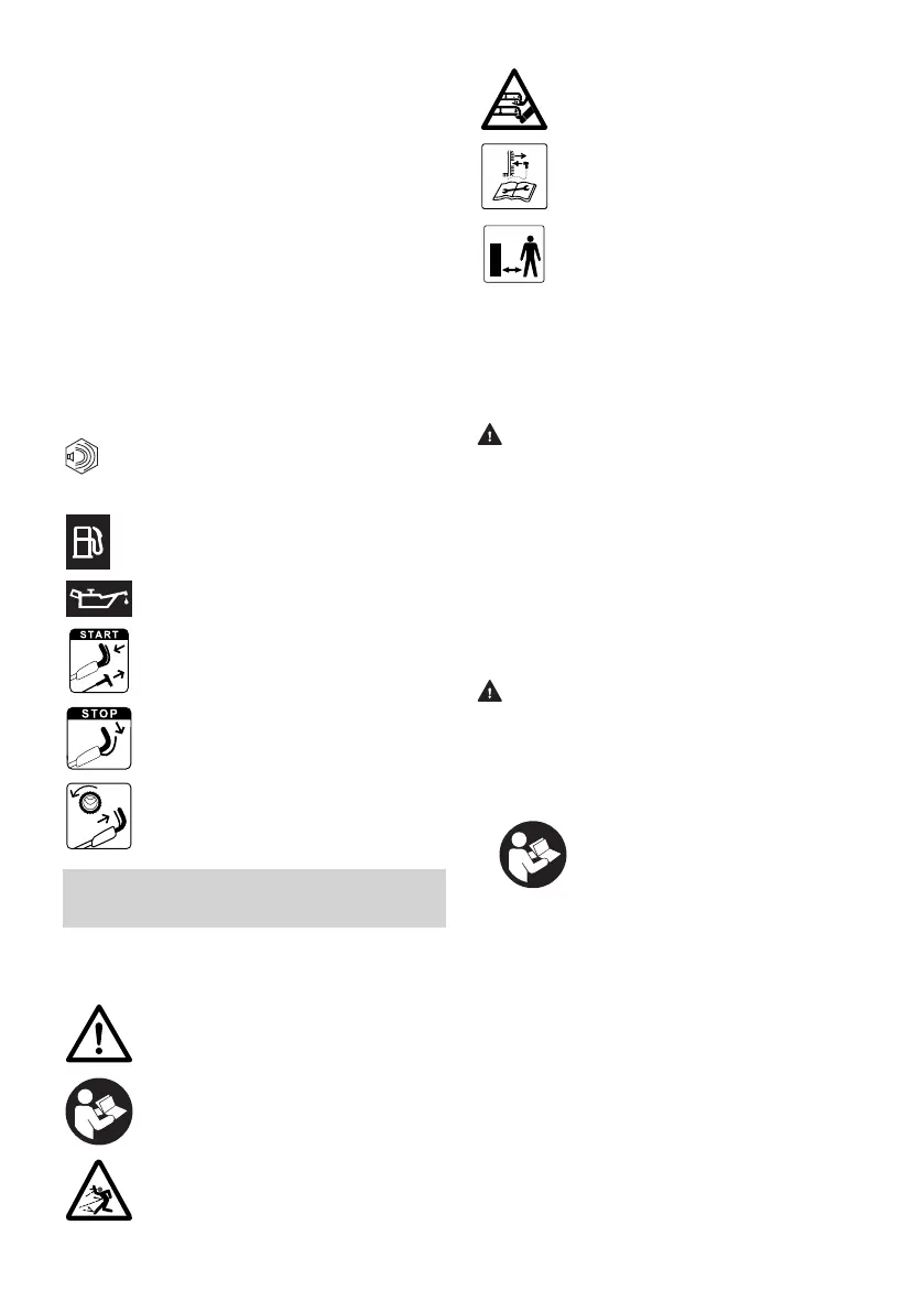 Znaczenie symboli ostrzegawczych na kosiarce: