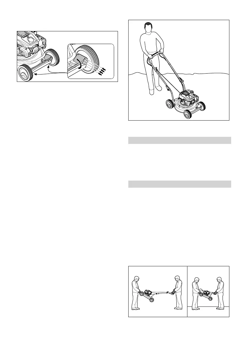 ► Поставить газонокосилку на ровную поверх‐