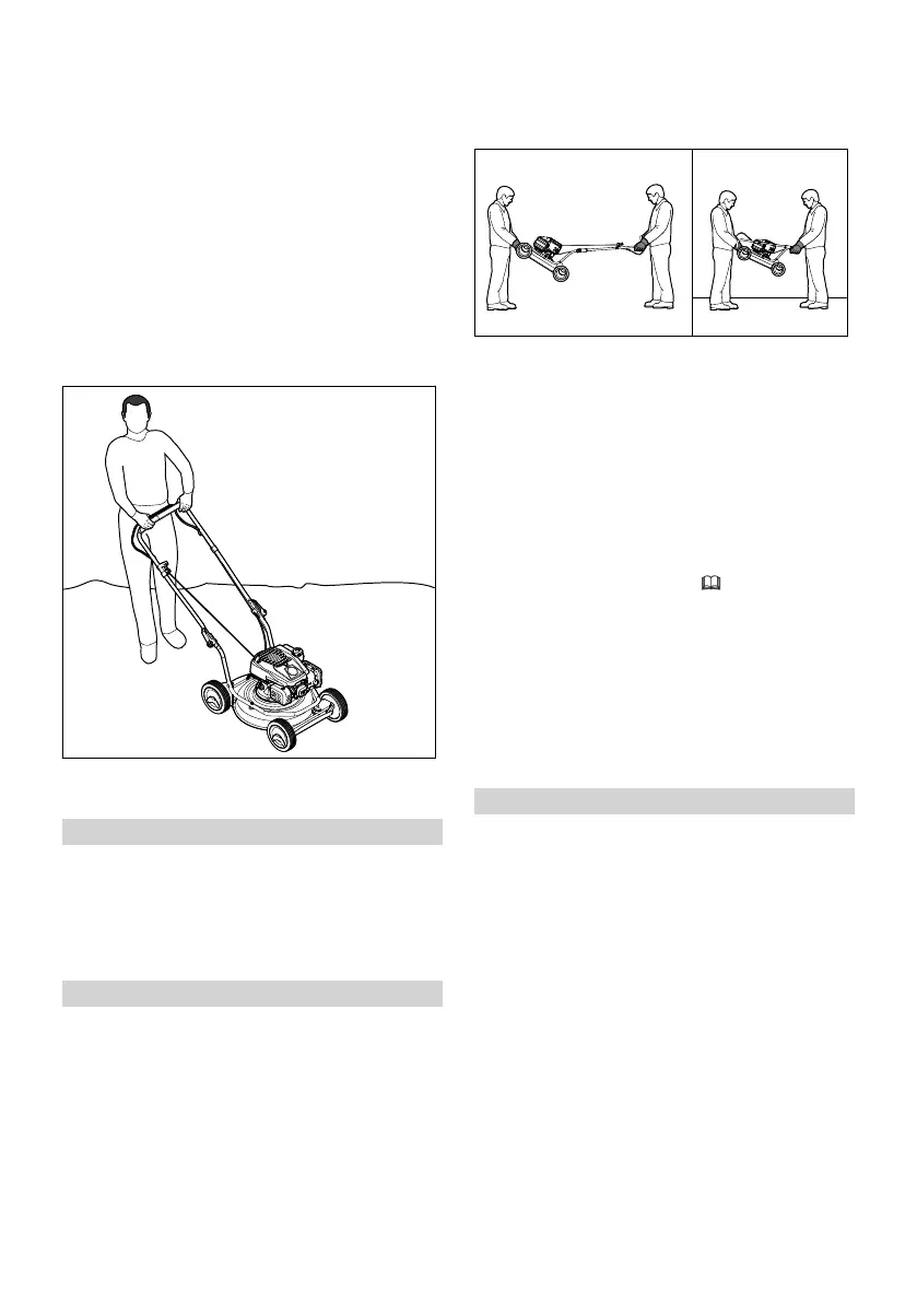 ► Lēni un kontrolēti stumiet zāles pļāvēju uz
