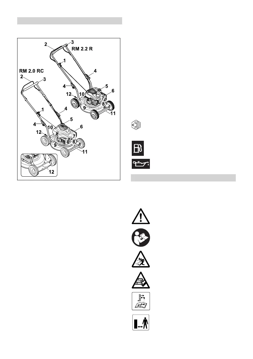 Die Warnsymbole auf dem Rasenmäher bedeu‐