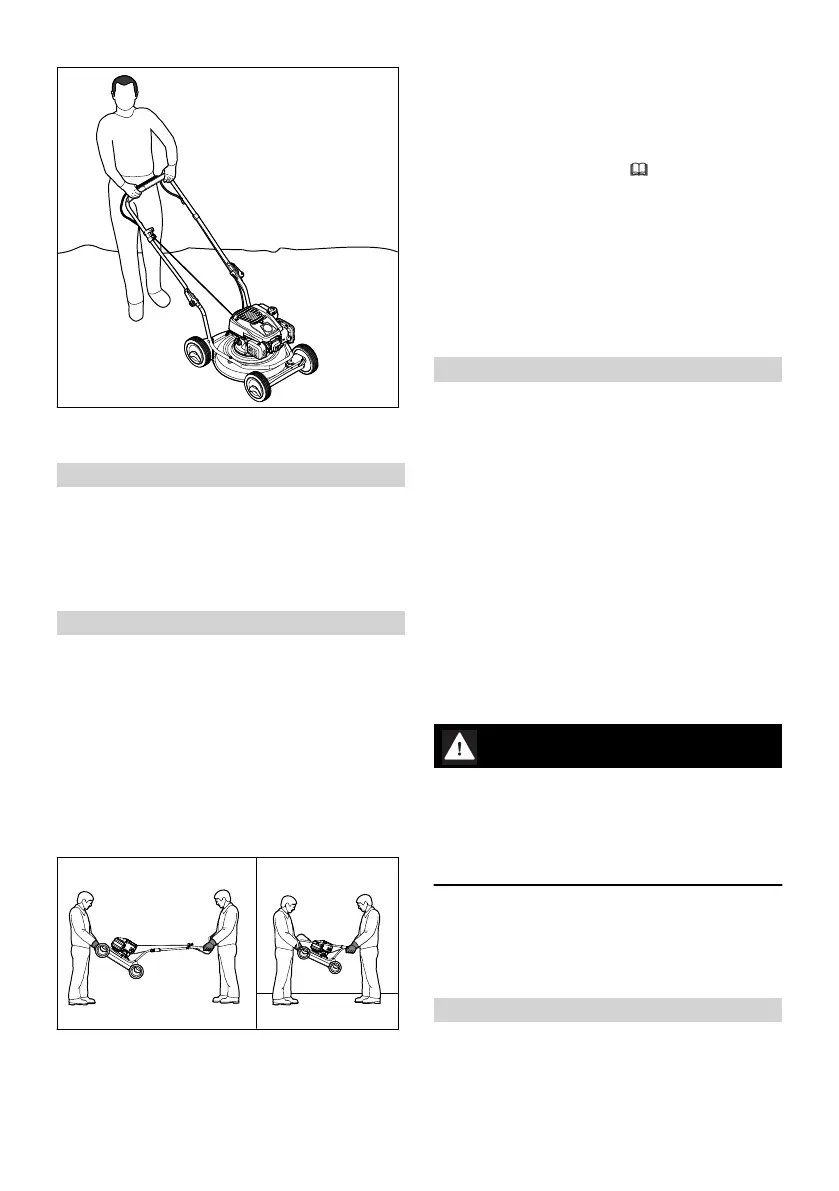 ► Om gräsklipparen bärs med uppfällt styrhand‐