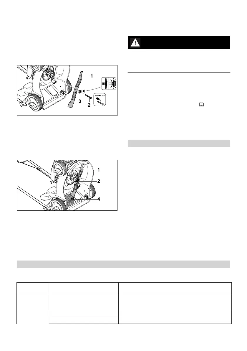 ► При повреждении газонокосилки или ножа: