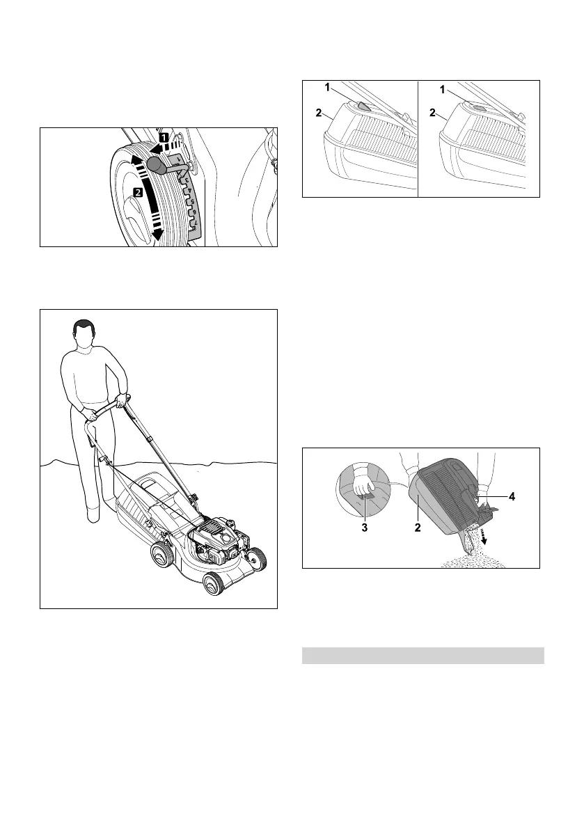 nozīmē, ka ir jāiztukšo zāles savācējgrozs (2).