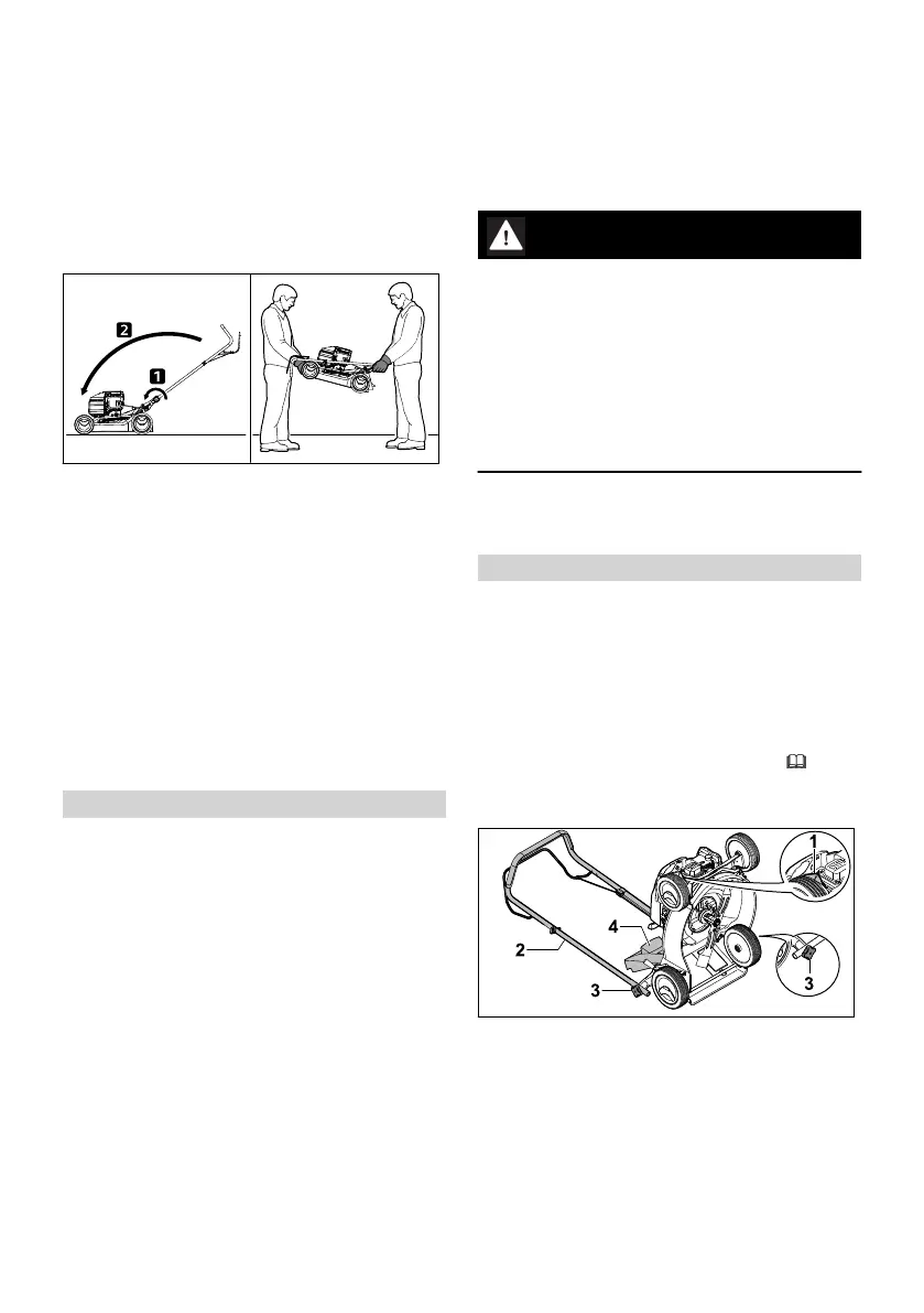 ► Ανασηκώστε και μεταφέρετε το χλοοκοπτικό