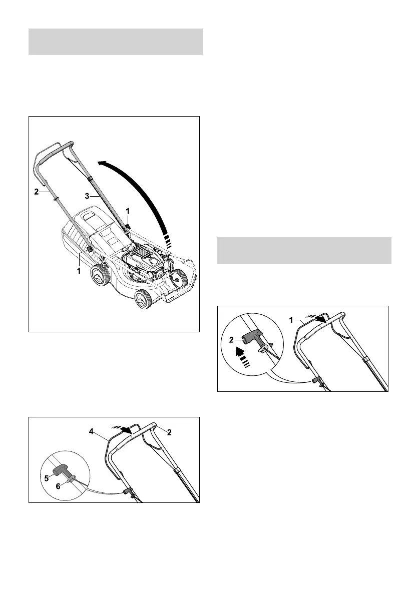 ► Tërhiqeni dorezën e ndezjes (2) me dorën e