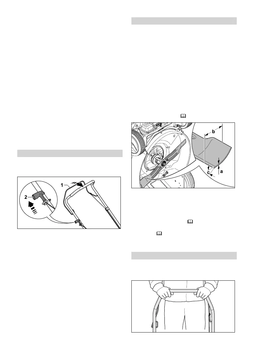 ► Atleiskite pjovimo režimo įjungimo rankeną (4).