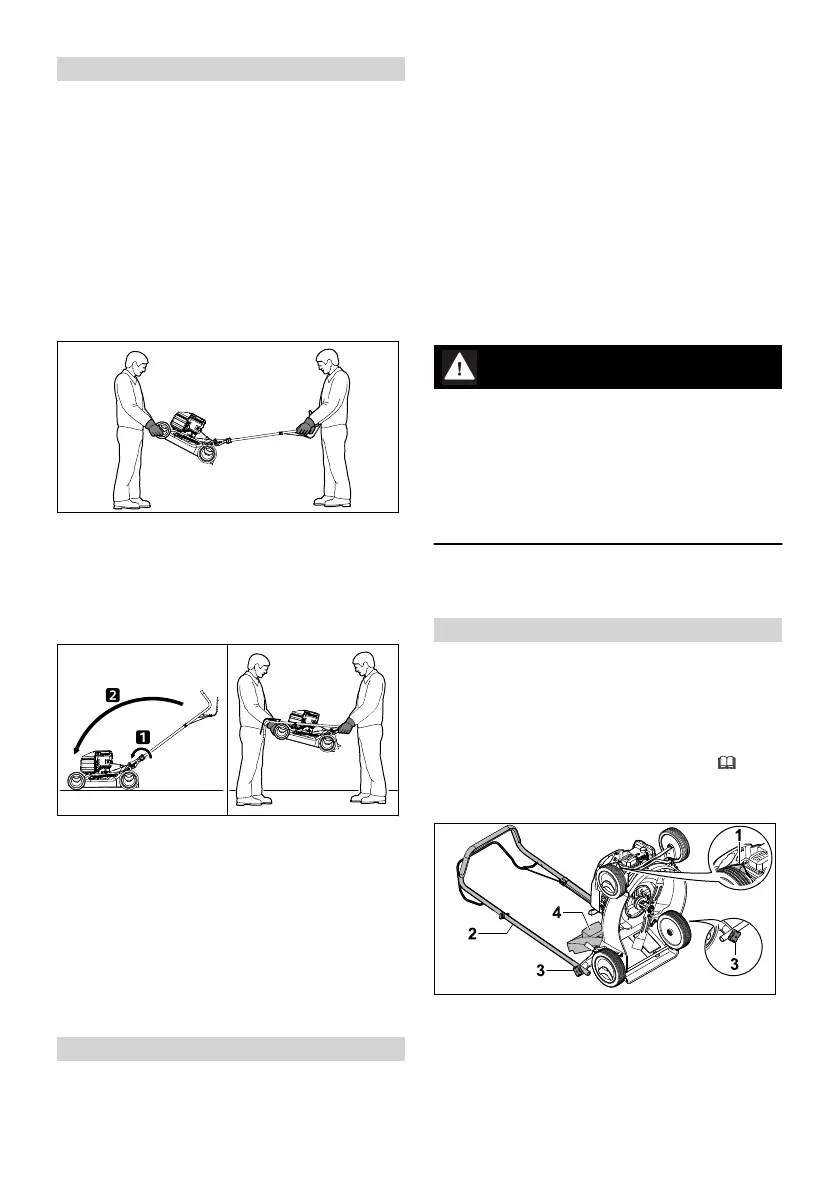 ► Pakelkite ir neškite vejapjovę dviese.