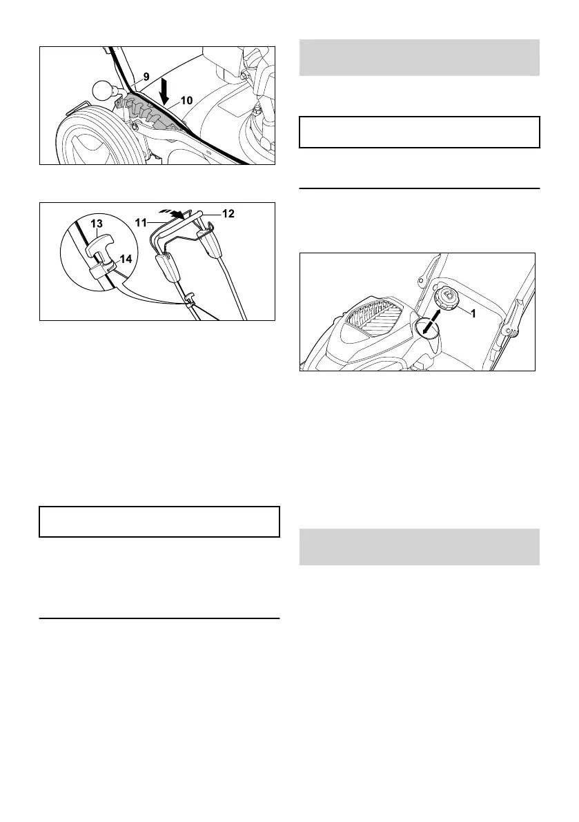 ► Hekt starthåndtaket (13) i snorføringen (14).