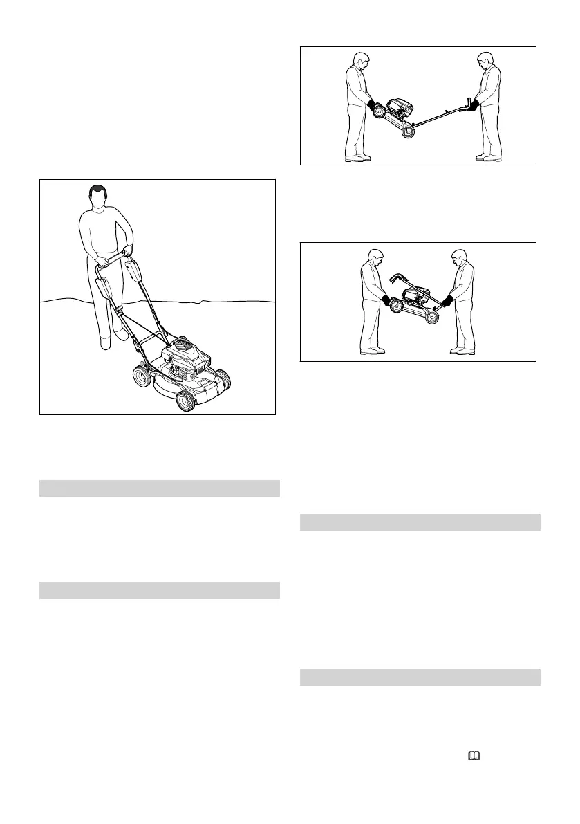 ► Løft og bær gressklipperen sammen.