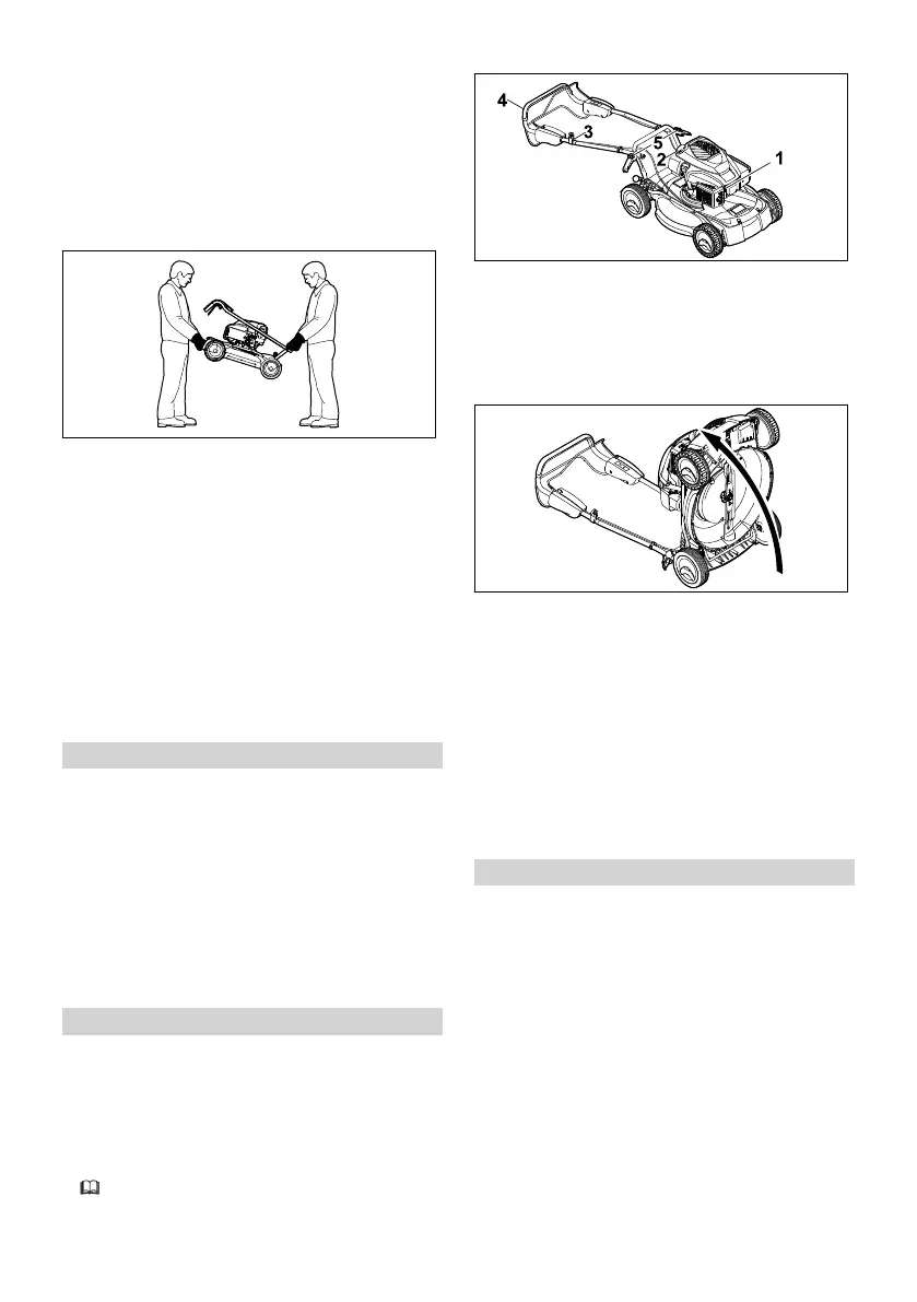 ► Plaats de grasmaaier op de achterkant.