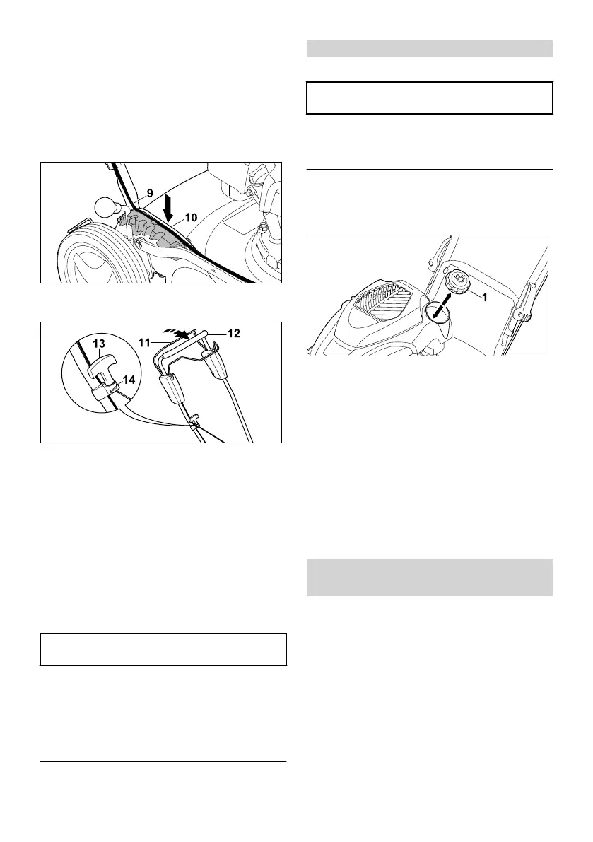 ► Przyciągnąć dźwignię koszenia (11) do uch‐