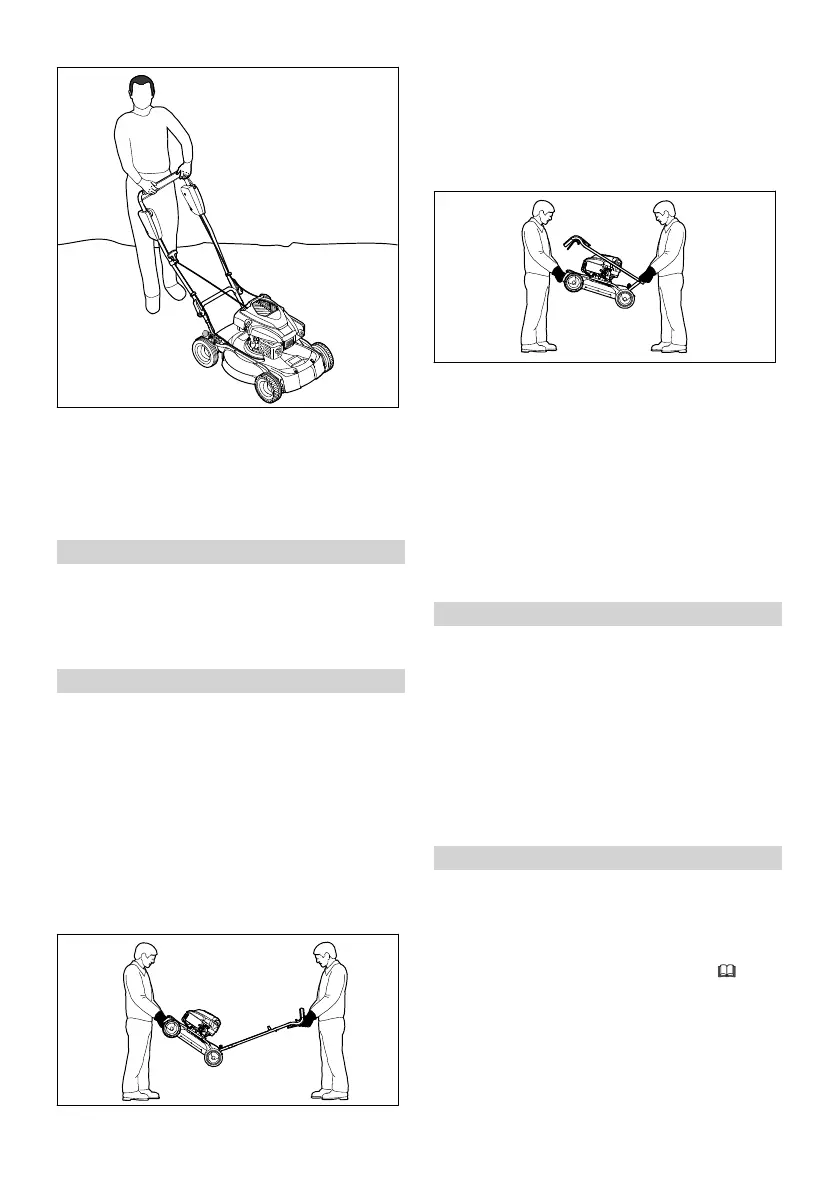 ► Pakelkite ir neškite vejapjovę dviese.