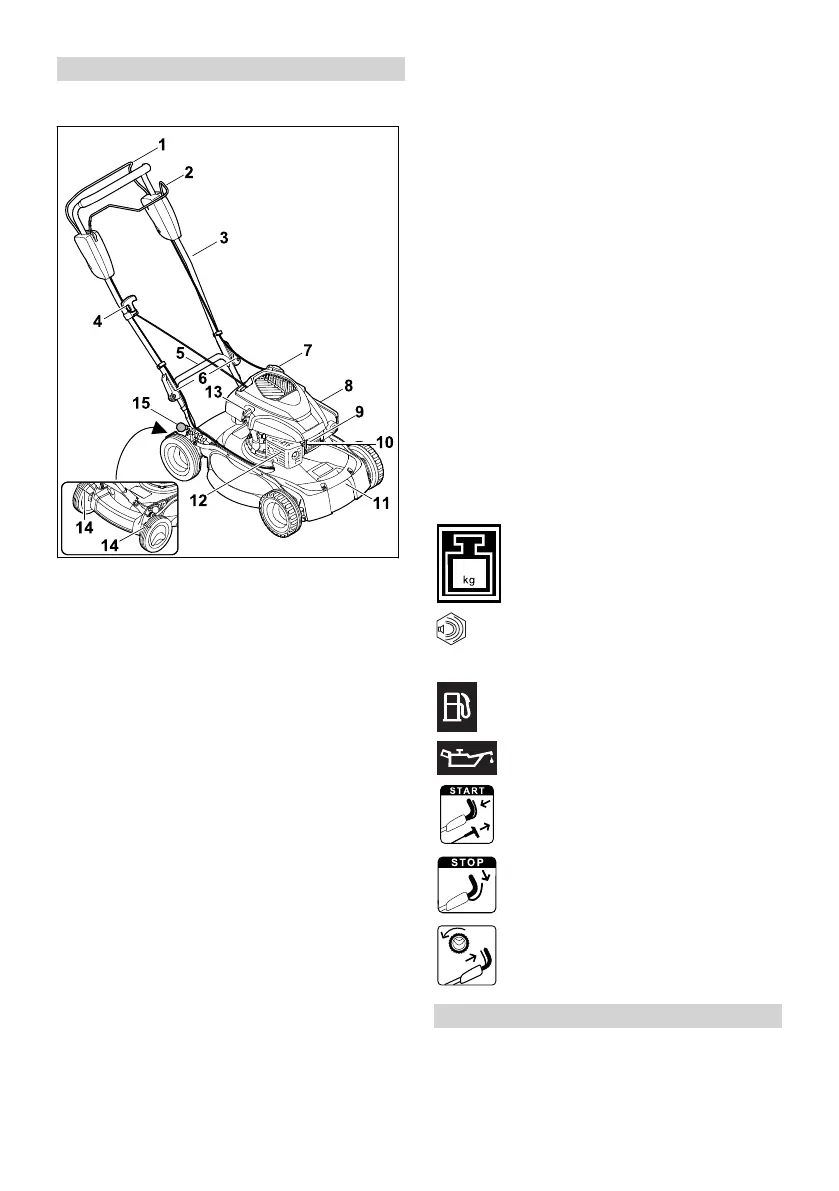 Die Symbole können auf dem Rasenmäher sein