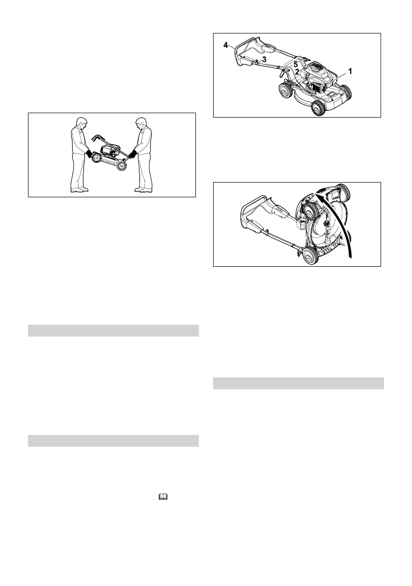► The lawn mower must be lifted and carried