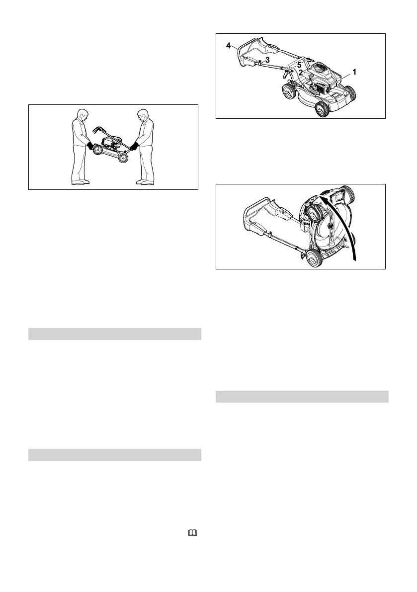 ► Soulever ou porter la tondeuse à deux.