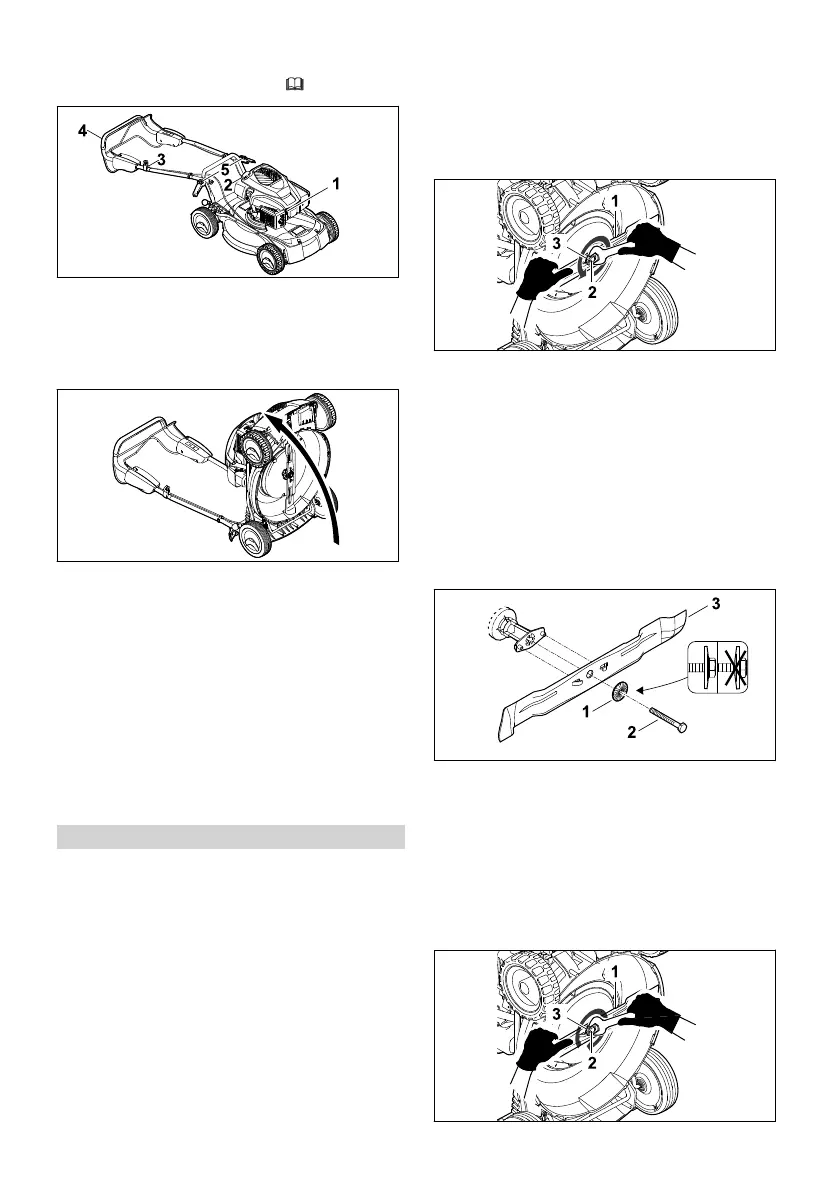 ► Tippa gräsklipparen bakåt.